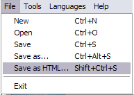 Save as HTML - to save current project into the HTML file (*.html). Project HTML file will be saved then, and the directory created, containing buttons' images. The directory name will be: "YourProjectName-files", where YourProjectName is the name of the HTML file saved. For example: if you enter "Header" in the "Name" field of the "Save as…" dialog, then "Header.html" and directory named "Header-files" will be created.