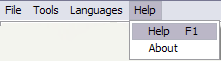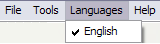 The "Languages" menu contains the list of available interface languages. English is the default language setting.