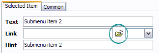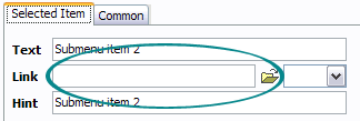 Another way to set the submenu's link is to select it and then click the "Select page" button on the Properties toolbox. Open dialog will appear, in which you can select the page you would like to link to. This page's address will then appear in the "Link" field.