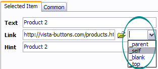 - Also, you can assign link target attributes for each submenu item. This will define where a linked page will be opened in your Web-browser. For example "_blank" attribute will open the linked page in new browser window. Note that link target attribute act exactly like the Target attribute of the <a> tag in HTML. To set submenu link target attribute, just select the submenu item and then either choose one of the predefined values from the "Link target attributes" list on the Properties toolbox or enter your own value (window/frame name, where the linked page should be opened). Learn more about link target attributes from the user guide.