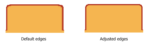 - Press "Edit Properties..." button to edit button edges width. By default, when you add new button, its edges widths are set to 5. But if you will change preview button size to 100x50 or bigger, you will see that some image elements look "fuzzy" (left image on the picture below). It happened because the play buttons border is not within the edge area.
